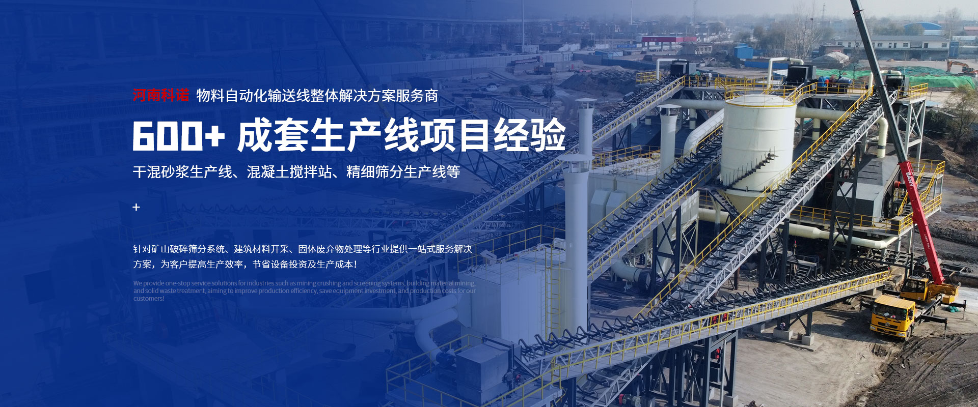 河南科諾機械設備有限公司成立于2017年,坐落于新鄉市高新區大數據產業園;是從事建筑、礦山機械設計、制造銷售的高科技企業,主要產品有:精細篩分(搖擺篩、直排篩、平面回轉篩)設備、斗式提升機、環保自清輸送設備、高效脈沖除塵器、智能環保型振動篩等單臺產品及特細砂干法制砂樓、精細篩分生產線、干混(粉)砂漿生產線、特種砂漿生產線、石膏砂漿生產線、混凝土攪拌站成套設備EPC總包項目等。產品廣泛應用于礦山破碎篩分系統、建筑工程材料的開采、固體廢棄物處理、化工、食品及其它等行業。公司以“與時俱進、開創未來”為企業宗旨;以“專注成套設備解決方案”為己任。秉承“科學進取、千金一諾”企業理念,積累了良好的市場信譽,并獲得了廣大客戶的信任和好評。